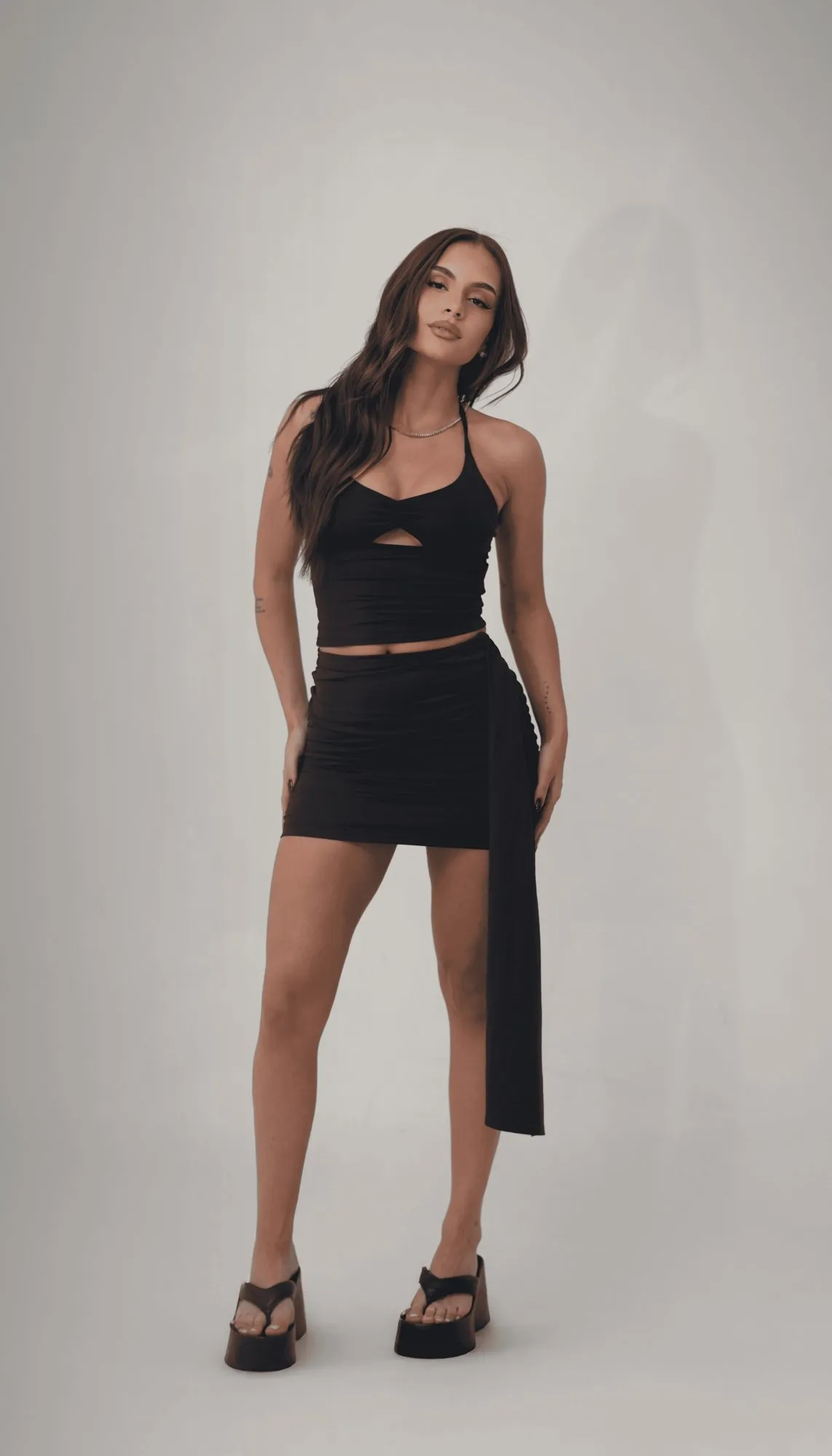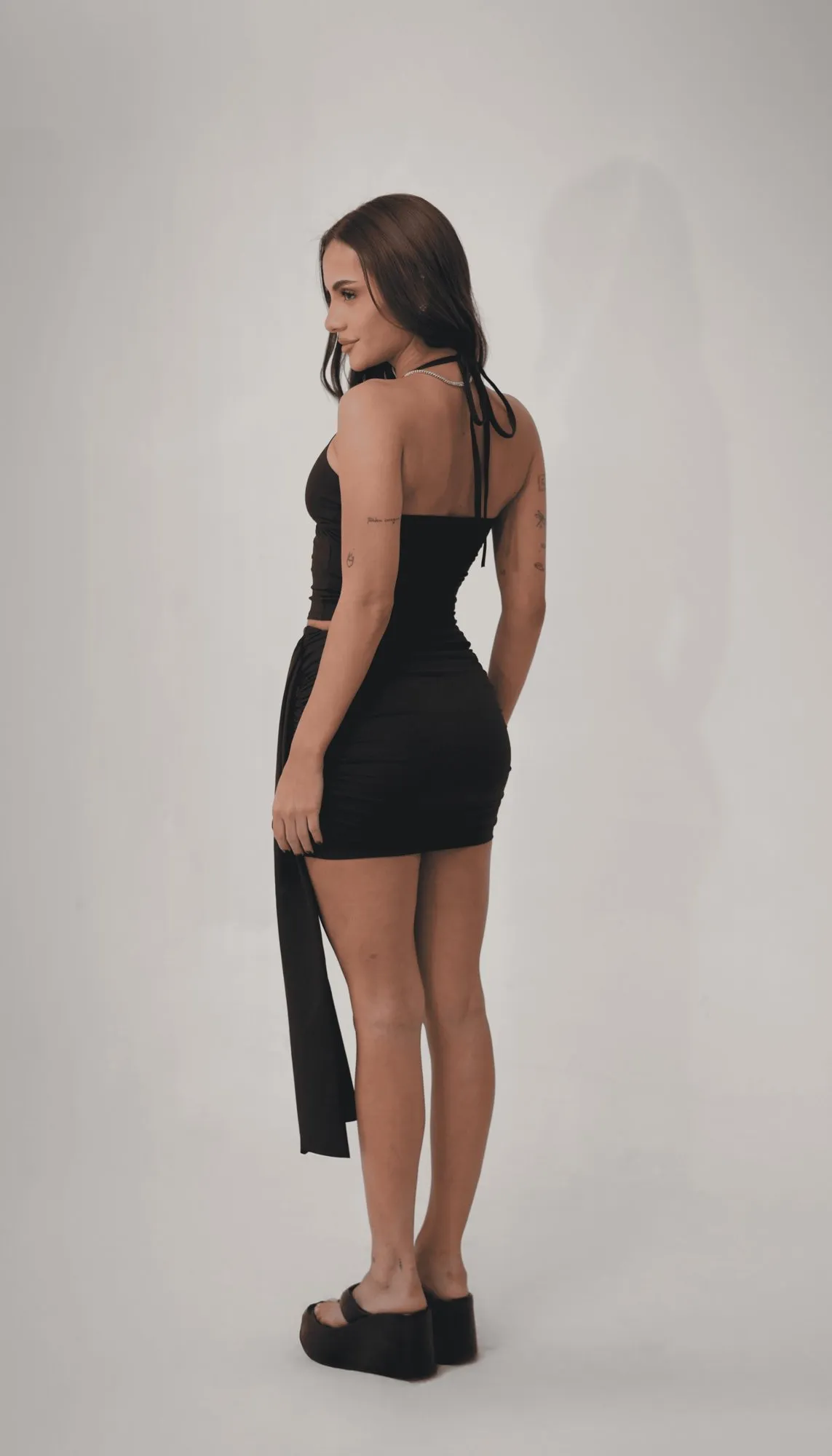 Saia poliamida drapeada preta